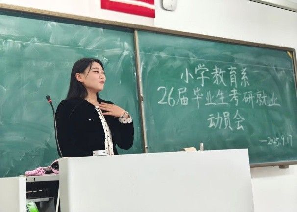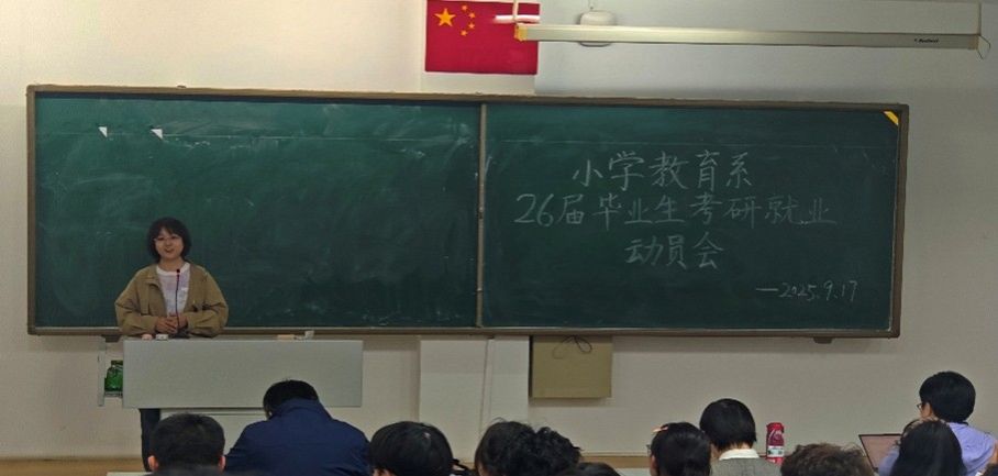 2025年9月17日晚7点,小学教育系2026届毕业生考研就业动员会在盛乐校区行知楼正式召开。太阳成集团tyc122ccvip党委书记周越、小学教育系支部书记成欣欣、实践部主任马红斐、系主任常红梅、青年教师代表李晓贺和研究生代表、2023—2025级本科生代表以及2026届全体毕业生共同参会,现场气氛活跃。