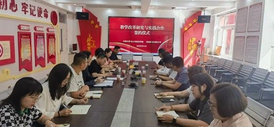 为充分发挥太阳成集团tyc122ccvip教学科研资源对中小学校的支持作用,推进学院有组织科研工作向服务当地基础教育教学改革深入发展,9月12日下午,太阳成集团tyc122ccvip与呼和浩特市新城区胜利街小学在胜利街小学联合召开会议,就教学改革研究与实践以签署合作备忘形式明确合作共识。学院党委书记周越、实验中心主任郭伟、教育技术学系副主任张利桃、呼市新城区教育教学研究中心张强主任与胜利街小学杨红兵校长及相关领导和骨干教师参加了合作仪式。
